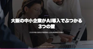 2026年春、大阪の中小企業経営者からAI導入の相談を受ける機会が増えた。昨年までと明らかに違うのは、相談の温度である。去年は「うちもそろそろ何か始めたほうがいいのか」という遠巻きの問いだったが、今年は「もう始めないとま […]